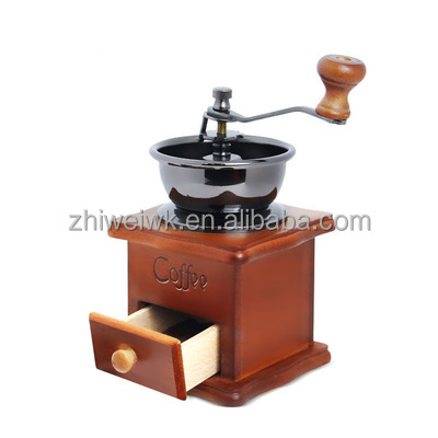 Moulin à café à manivelle en bois massif Moulin à café en grains Moulin manuel domestique