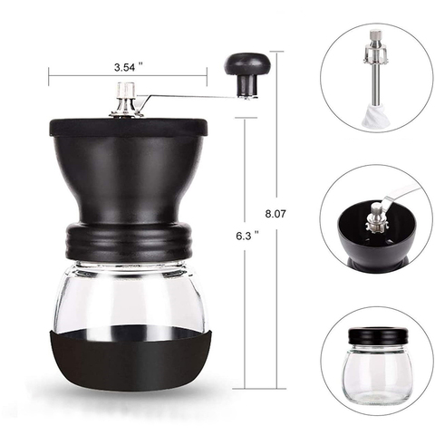 Moulin à café manuel en céramique moulin à café à manivelle portable avec coque en acier inoxydable et poignée amovible